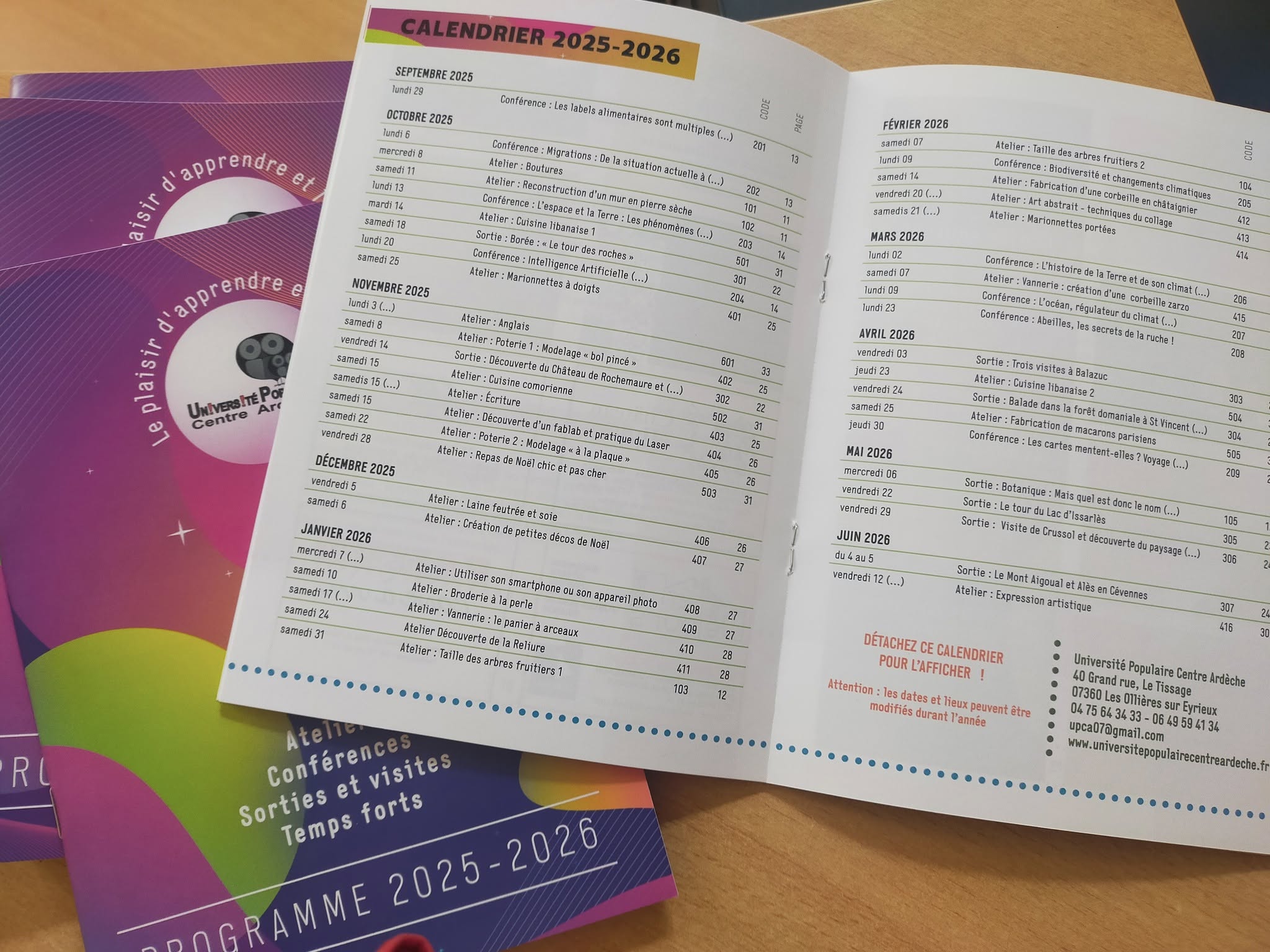 Le programme de l’université populaire est arrivé..- fascicule vu à la mairie des Ollières