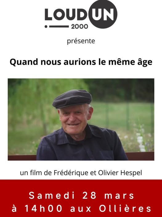 Samedi 28 mars à 14h00 aux Ollières, l’association “Aux temps solidaires” vous propose la projection du documentaire inter générationnel “Quand nous aurions le même âge” en présence des réalisateurs.