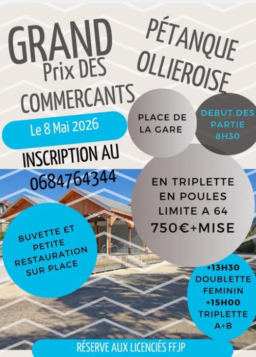 Le 8 mai 2026, grand prix des commerçants et de retour cette année en triplettes le matin, limité à 64.